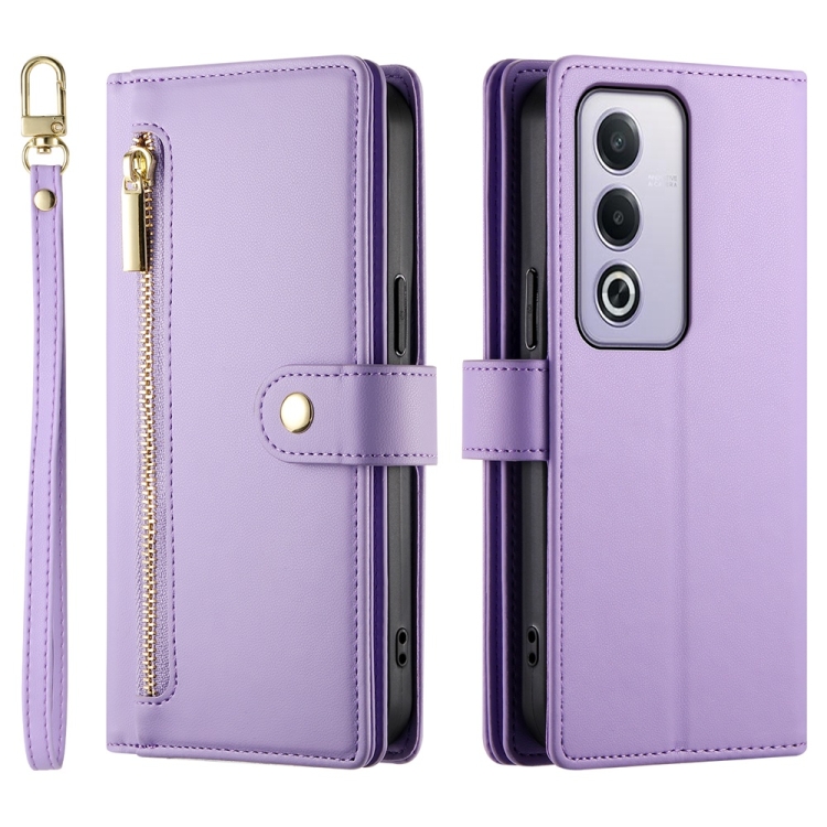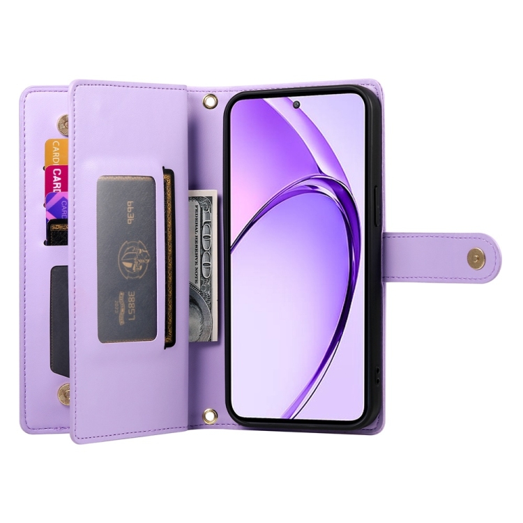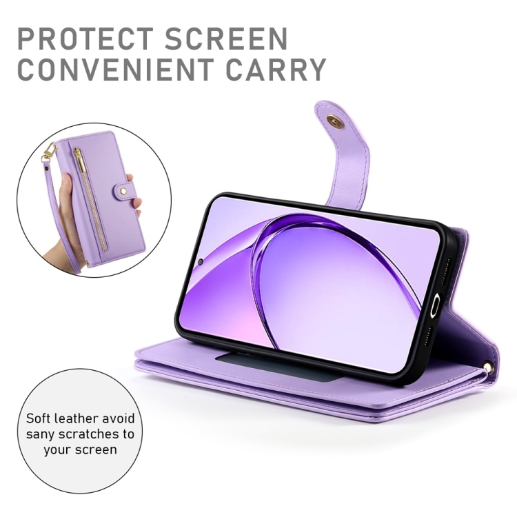 Funda de Cuero para Teléfono con Nueve Ranuras para Tarjetas y Cremallera para Oppo A3 Pro Global (Morado)