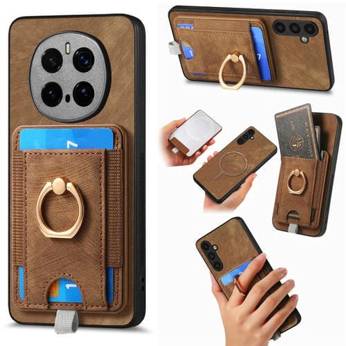 Funda de Cuero para Honor Magic 7 Pro con Tarjetero Magnético Divisible Retro (Marrón)