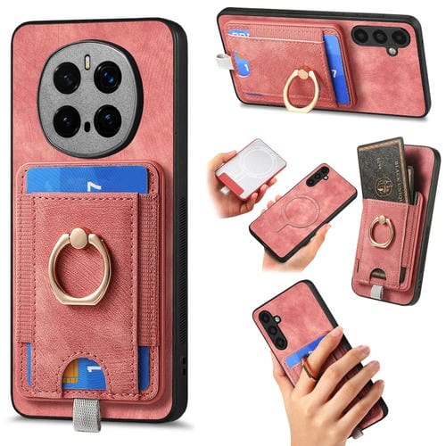 Funda de Cuero para Honor Magic 7 Pro con Tarjetero Magnético Divisible Retro (Rosa)