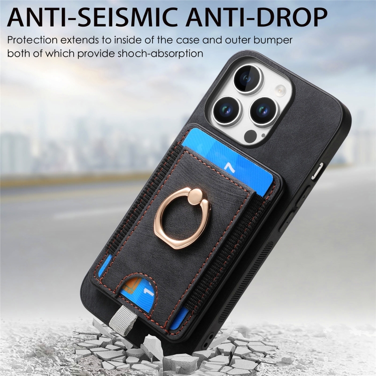 Funda de Cuero para Teléfono iPhone 16 Pro con Tarjetero Magnético Divisible Retro (Negro)
