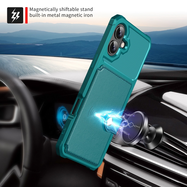 Funda de Cuero para Teléfono iPhone 16 Plus con Tarjetero y Billetera Magnética (Cian)