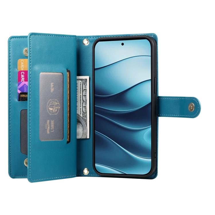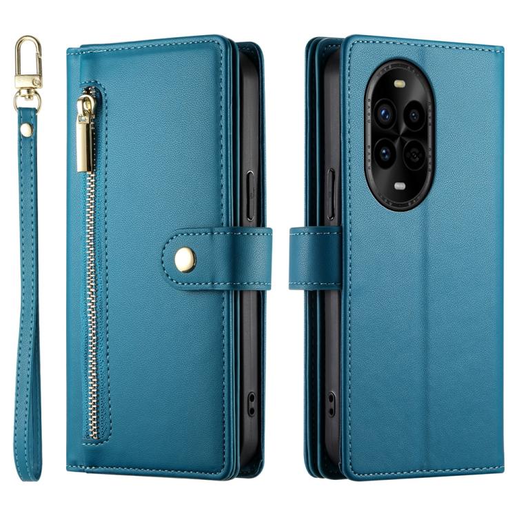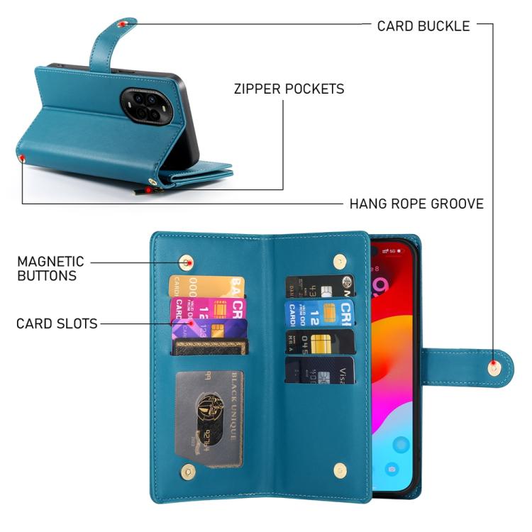 Funda de Cuero Huawei Nova 13 Pro con 9 Ranuras para Tarjetas y Cremallera (Azul)