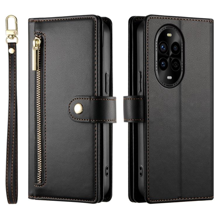 Funda de Cuero Huawei Nova 13 Pro con 9 Ranuras para Tarjetas y Cremallera (Negra)
