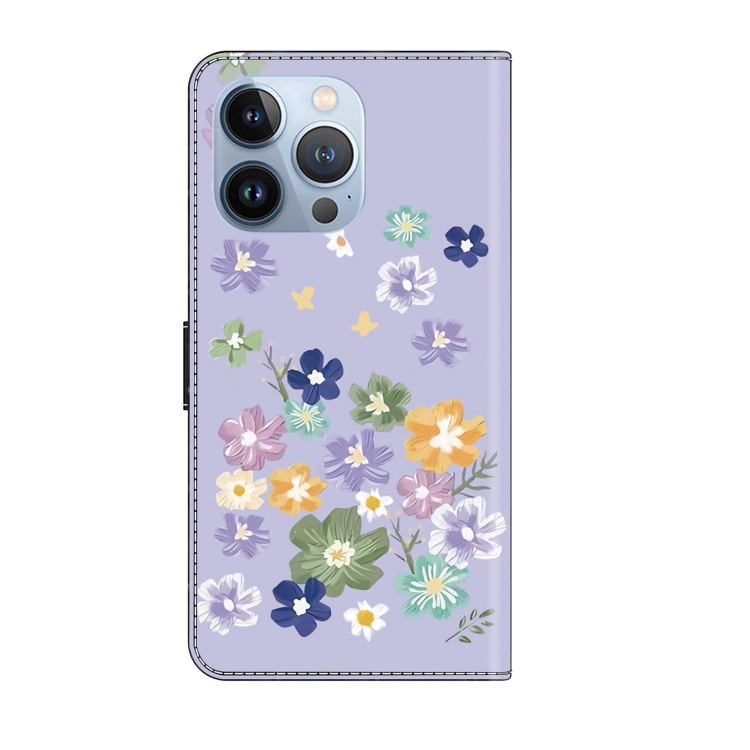Funda de Cuero Pintada a Mano para iPhone 16 Pro (Floral Morado)