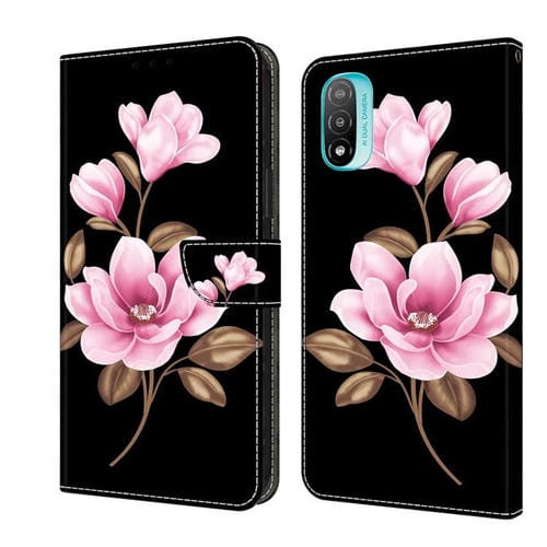 Funda de Cuero Pintada a Mano para Motorola Moto E20 (Flores Negras)