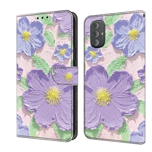 Funda de Cuero Pintada a Mano para Motorola Moto G Power 2022 (Flores Moradas)