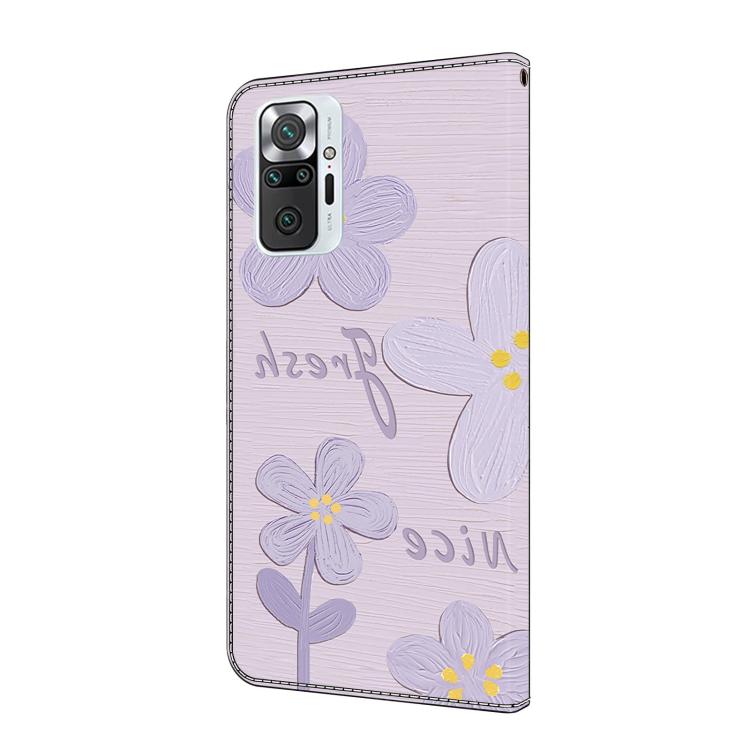 Funda de Cuero Pintada a Mano para Redmi Note 10 Pro 4G (Flores de Color Morado Oscuro)