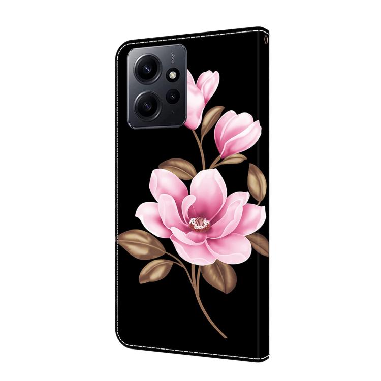 Funda de Cuero Pintada a Mano para Redmi Note 12 4G Global Fresh (Flores Negras)