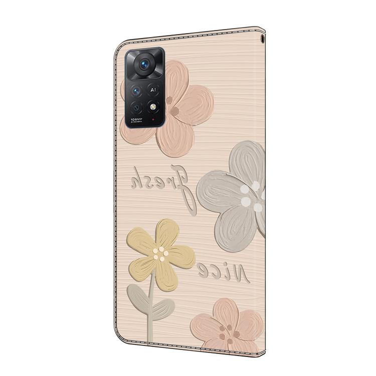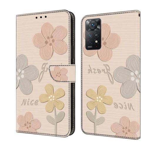 Funda de Cuero Pintada a Mano para Redmi Note 12 Pro 4G / 11 Pro (Flores Beige)
