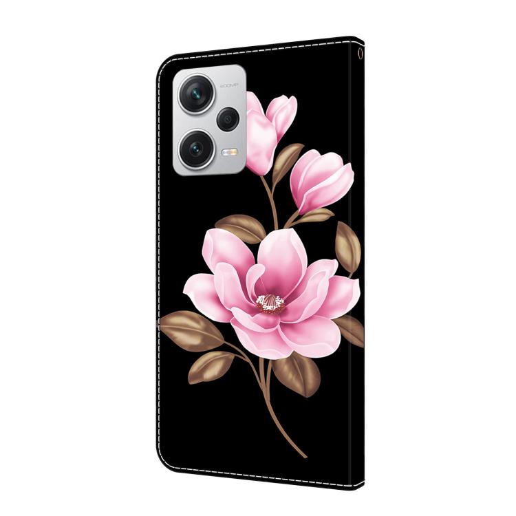 Funda de Cuero Pintada a Mano para Redmi Note 12 Pro+ (Flores Negras)