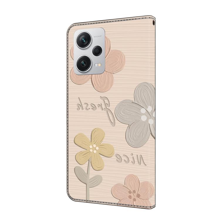 Funda de Cuero Pintada a Mano para Redmi Note 12 Pro+ Global Fresh (Flores Beige)