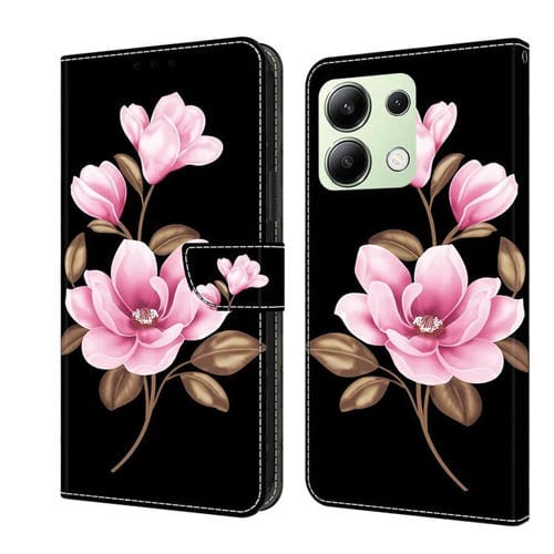 Funda de Cuero Pintada a Mano para Redmi Note 13 4G (Flores Negras)
