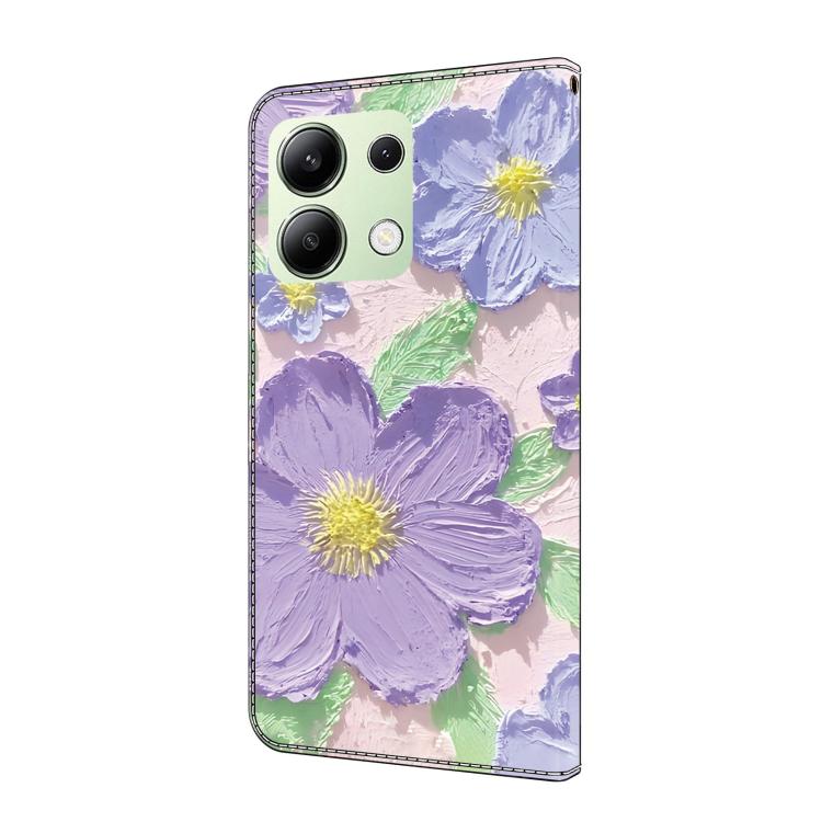 Funda de Cuero Pintada a Mano para Redmi Note 13 4G (Pintura al Óleo de Flores Moradas)