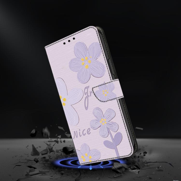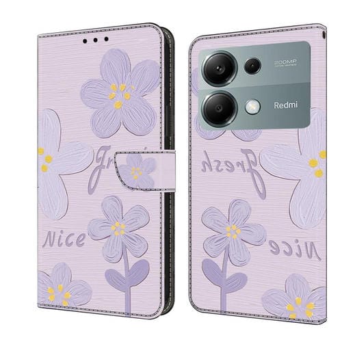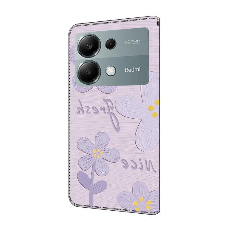 Funda de Cuero Pintada a Mano para Redmi Note 13 Pro 4G (Flores de Color Morado Oscuro)
