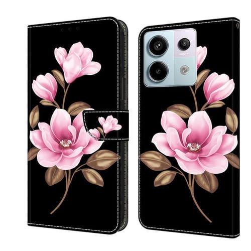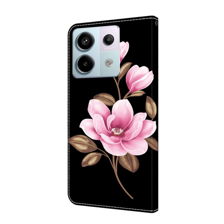 Funda de Cuero Pintada a Mano para Redmi Note 13 Pro 5G (Flores Negras)