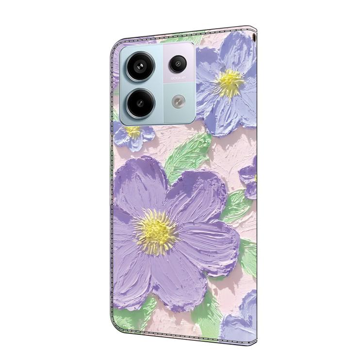 Funda de Cuero Pintada a Mano para Redmi Note 13 Pro 5G (Pintura al Óleo de Flores Moradas)