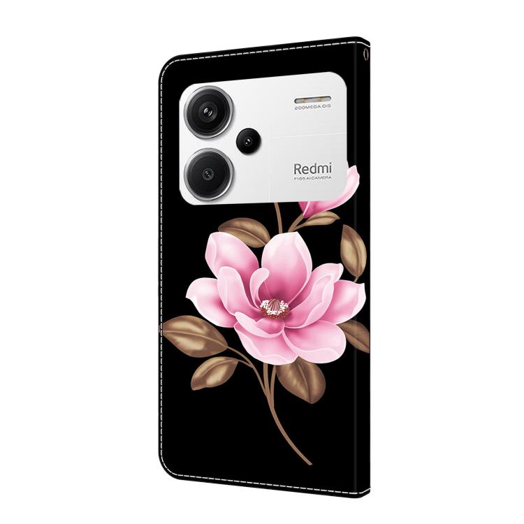 Funda de Cuero Pintada a Mano para Redmi Note 13 Pro+ (Flores Negras)