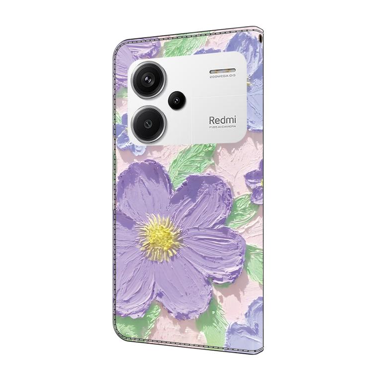 Funda de Cuero Pintada a Mano para Redmi Note 13 Pro+ (Pintura al Óleo de Flores Moradas)
