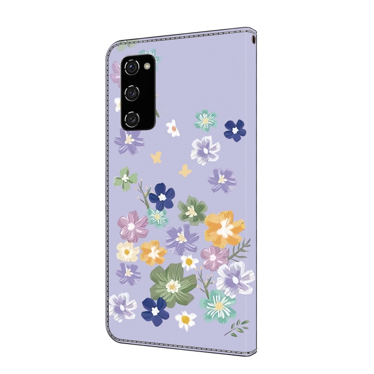 Funda de Cuero para Samsung Galaxy S20 FE Pintada a Mano Floral (Morado)