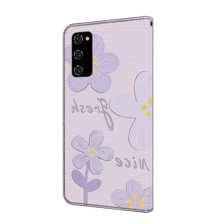Funda de Cuero Samsung Galaxy S20 FE Pintada a Mano con Flores Lilas