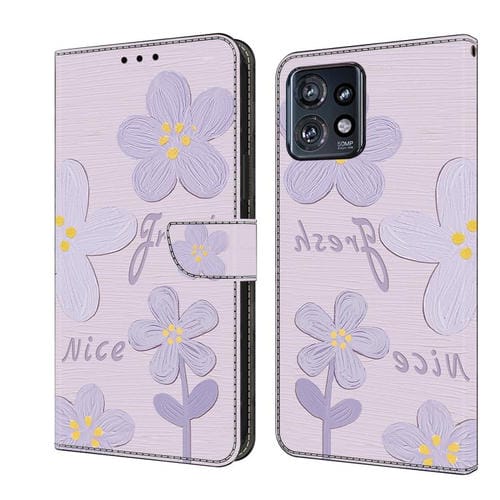 Funda de Cuero pintada a mano para Motorola Edge+ (2023) con Flores (Morado Oscuro)