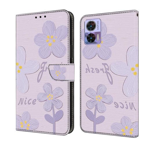 Funda de Cuero Pintada a Mano para Motorola Edge 30 Neo con Flores (Morado Oscuro)