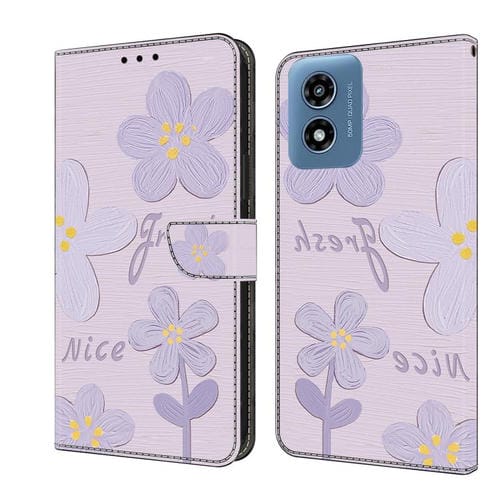 Funda de Cuero Pintada a Mano para Motorola Moto G Play 2024 (Flores Morado Oscuro)