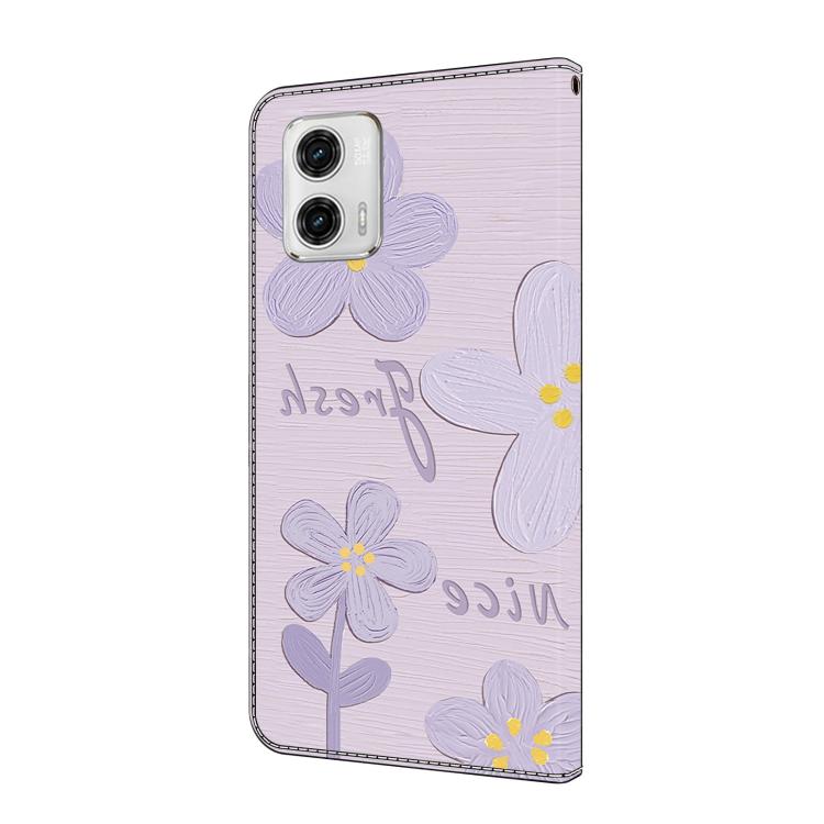 Funda de Cuero Pintada a Mano para Motorola Moto G73 con Flores (Morado Oscuro)