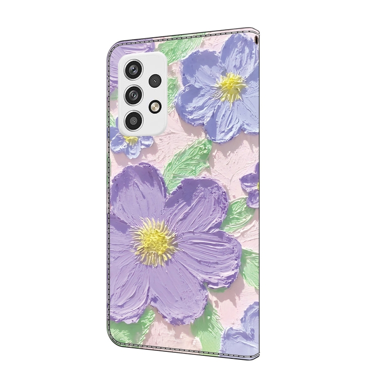 Funda de Cuero Samsung Galaxy A32 5G Pintada al Óleo Flores Moradas