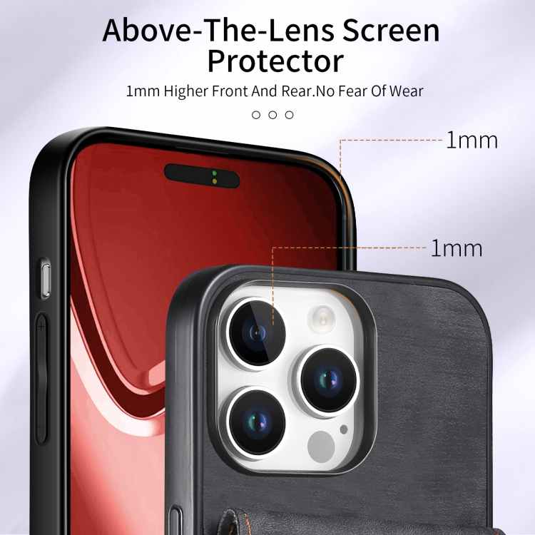 Funda Plegable Cuero con Tarjetero para iPhone 16 Pro Max con Correa (Negra)