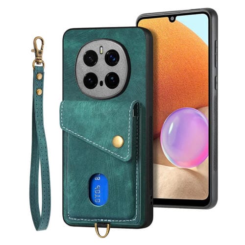 Funda Cuero Plegable Tipo Billetera con Correa para Honor Magic7 Pro Retro Card (Verde)
