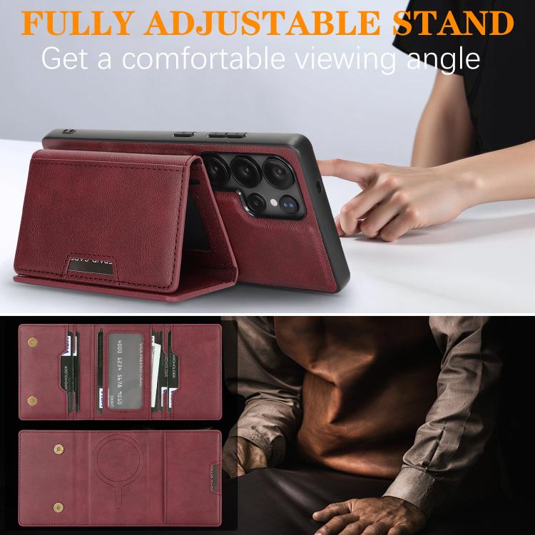 Funda de cuero plegable triple con imán fuerte MagSafe para Samsung Galaxy S22 Ultra 5G (rojo)