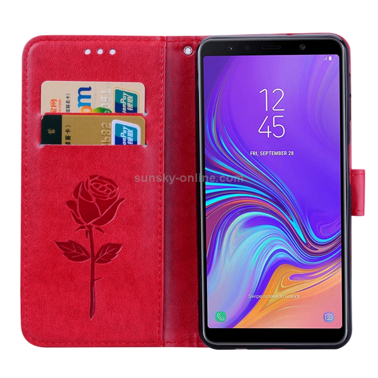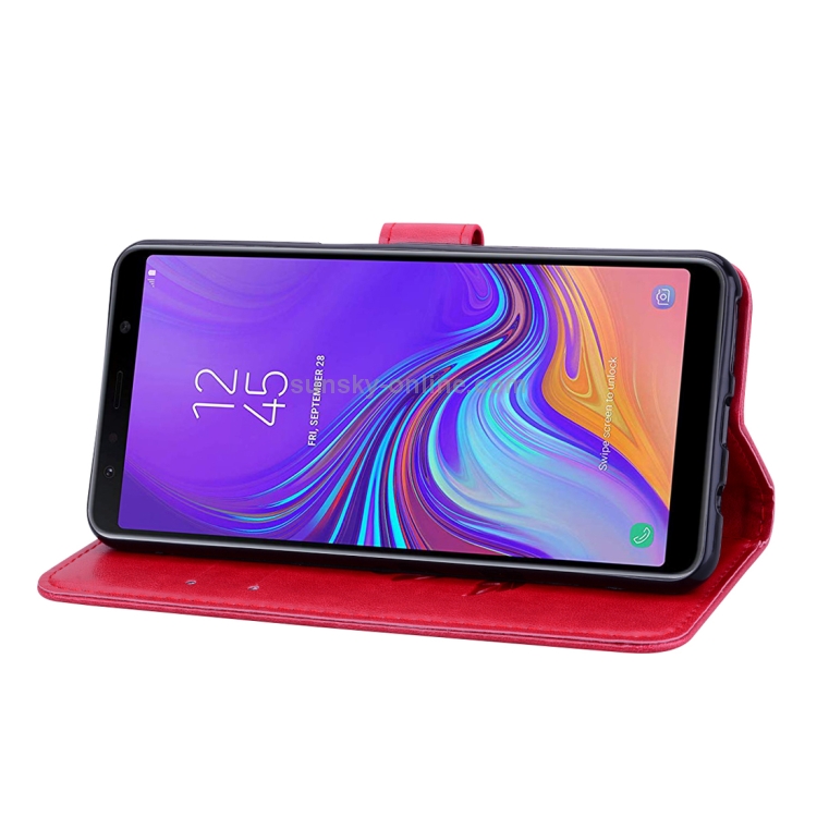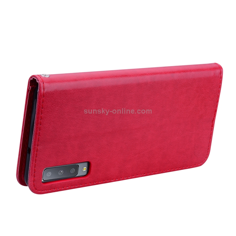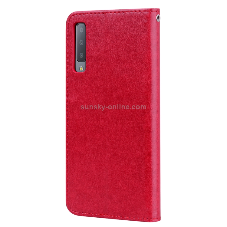 Funda Cuero Pu Samsung Galaxy A7 (2018) Tapa Horizontal Soporte Ranuras Billetera (Rojo)