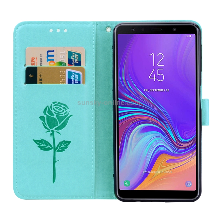 Funda Cuero Pu Samsung Galaxy A7 (2018) Tapa Horizontal Soporte Ranuras Tarjetas Billetera (Verde)
