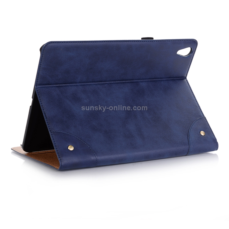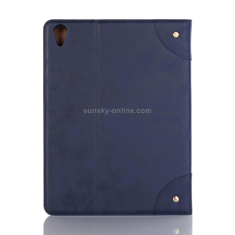 Funda para iPad Pro 12,9 (2018) Cuero Pu Tapa Horizontal Libro Retro Soporte Ranuras Tarjetas Billetera (Azul Marino)