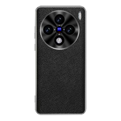Funda de Cuero Pu con Textura Cruzada y Borde Plateado para Vivo X100S Pro (Negro)