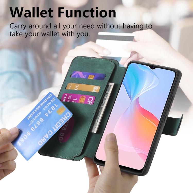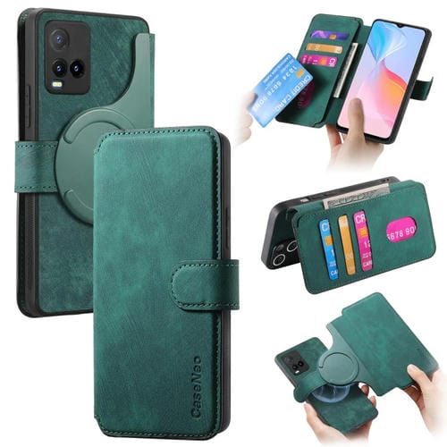 Funda de Cuero Retro Antirrobo con Rfid para Vivo Y21S/Y32/Y21T/Y3T Caseneo Magsafe (Verde)