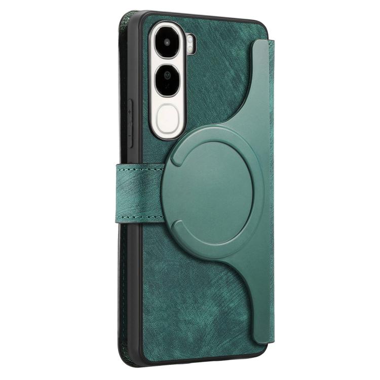Funda de Cuero Retro Antirrobo con Rfid y Magsafe para Vivo V40 Se (Verde)