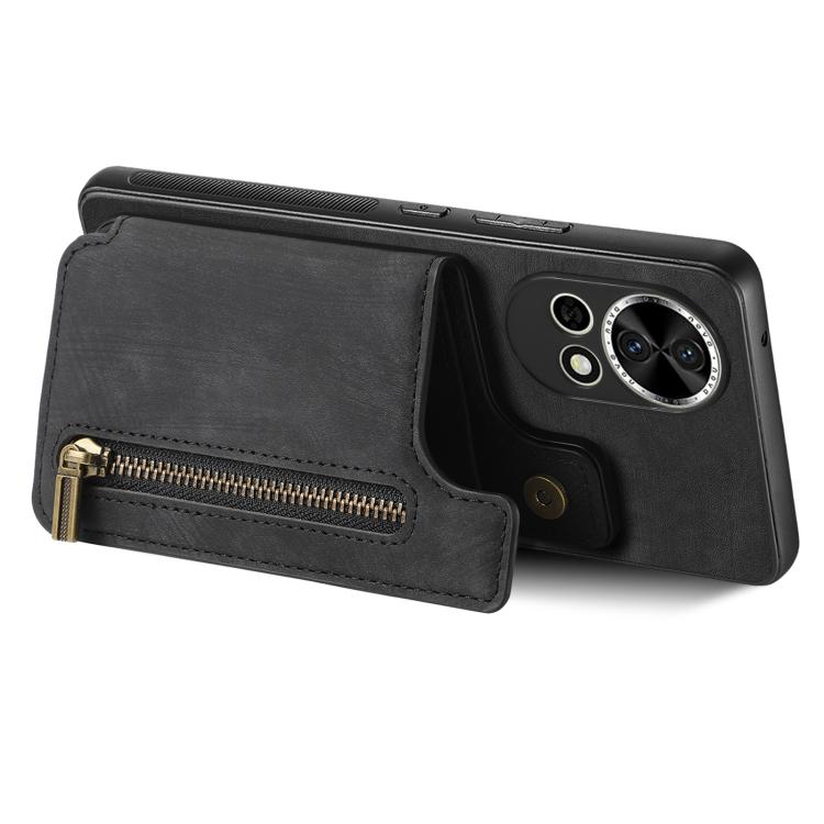 Funda de Cuero Retro con Cremallera para Huawei Enjoy 60 (Negra)