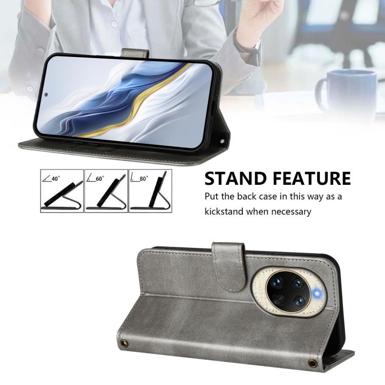 Funda de cuero retro con hebilla y empalme de líneas para Huawei Nova 14 (gris)
