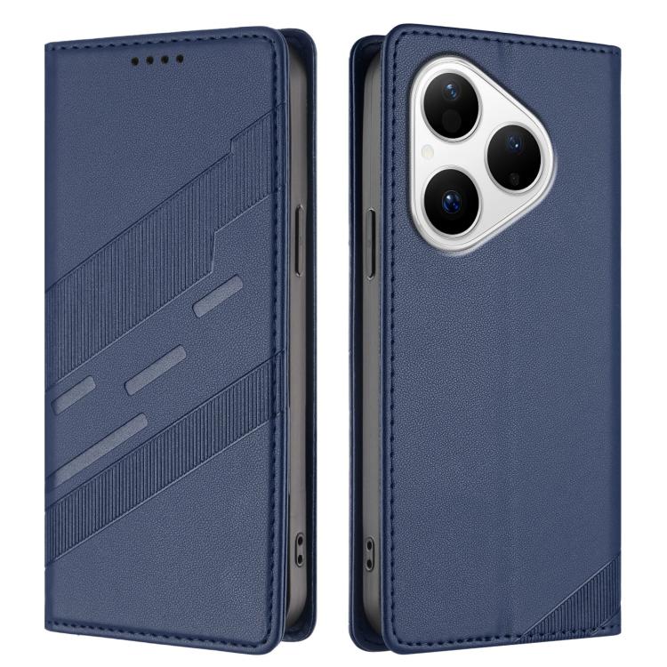 Funda de cuero retro con relieve para Huawei Pura 80 (azul oscuro)