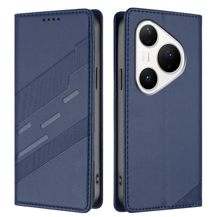 Funda de cuero retro con relieve para Huawei Pura 80 Pro (azul oscuro)