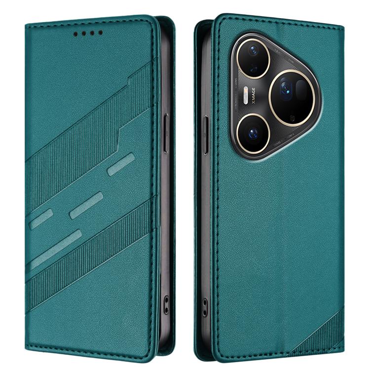 Funda de cuero retro con relieve para Huawei Pura 80 Pro Ultra (verde oscuro)