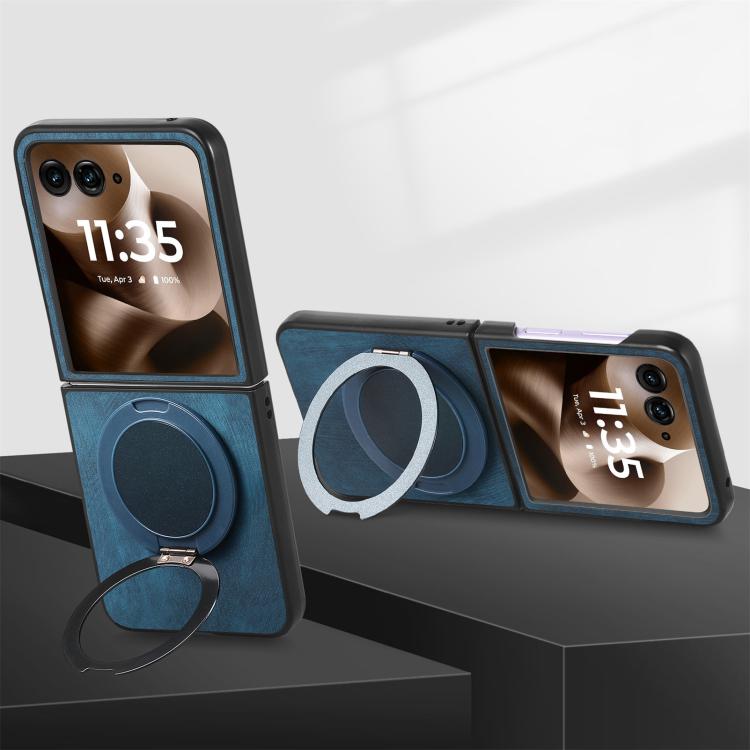 Funda de cuero retro con soporte giratorio para Motorola Moto Razr 40 Ultra (azul)