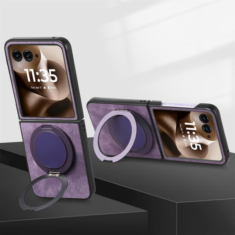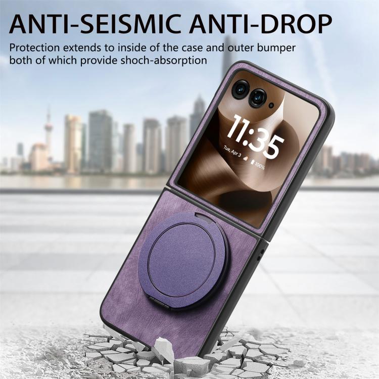Funda de cuero retro con soporte giratorio para Motorola Moto Razr 40 Ultra (morado)