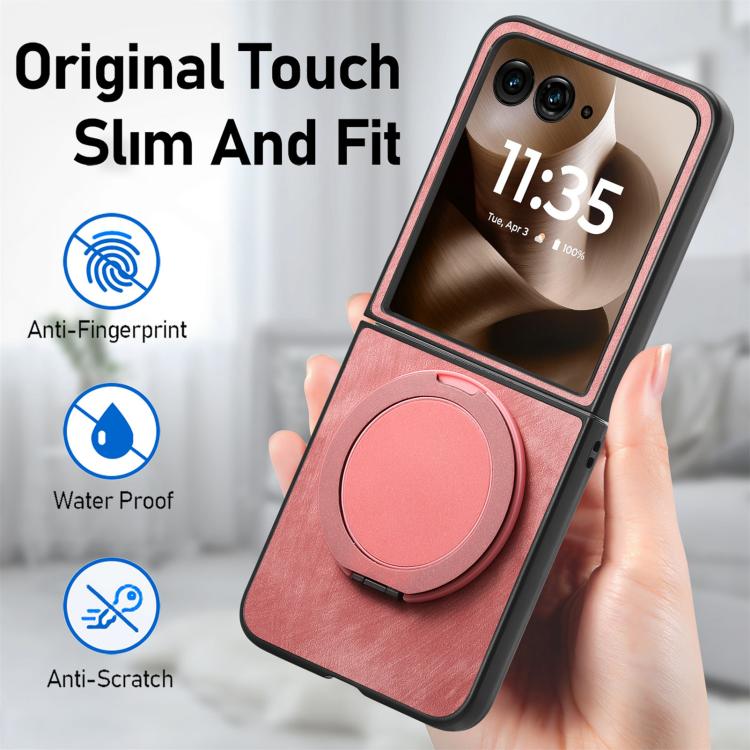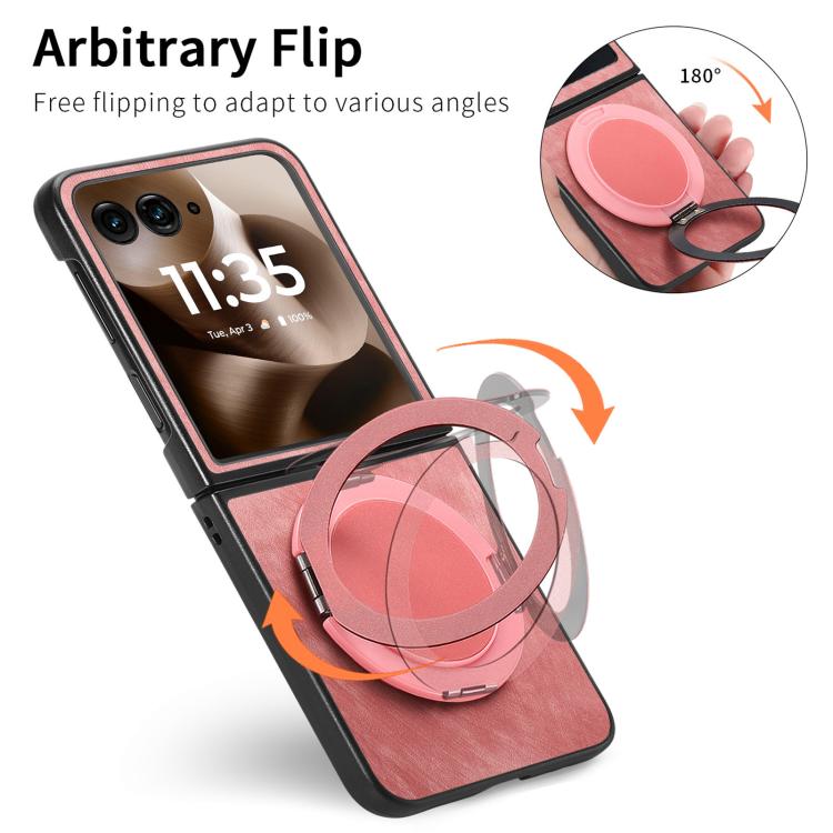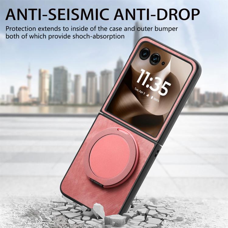 Funda de cuero retro con soporte giratorio para Motorola Moto Razr 50 Ultra (rosa)
