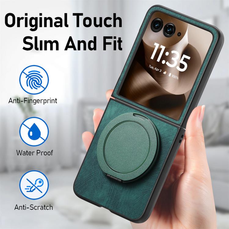 Funda de cuero retro con soporte giratorio para Motorola Moto Razr 60 Ultra (verde)