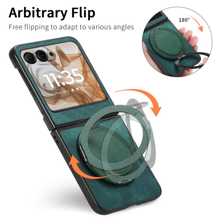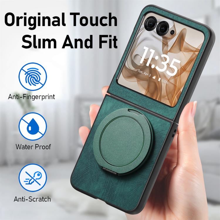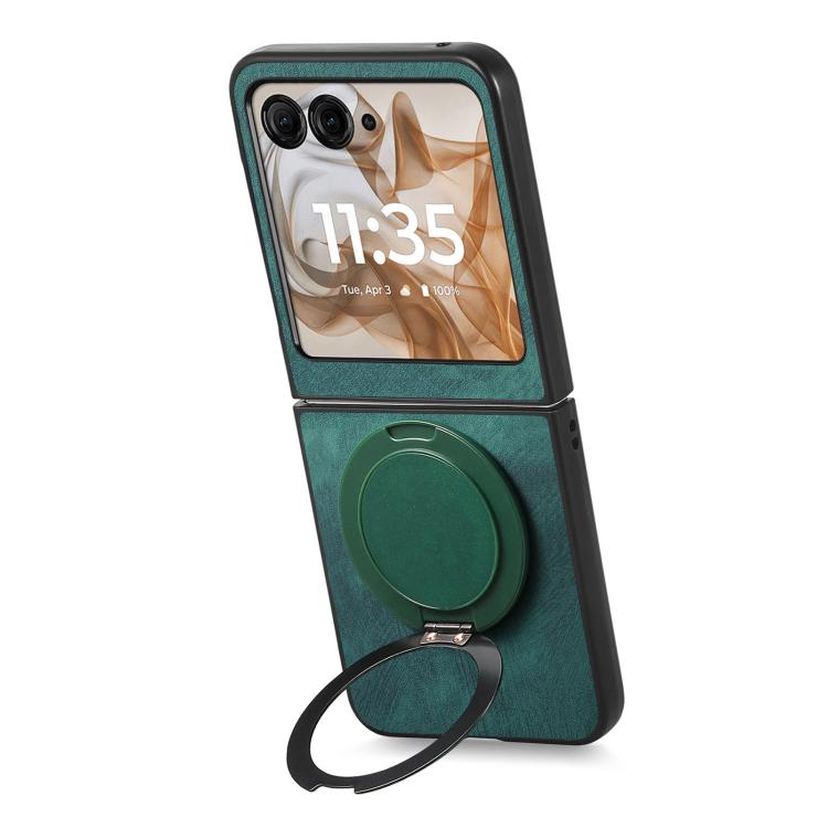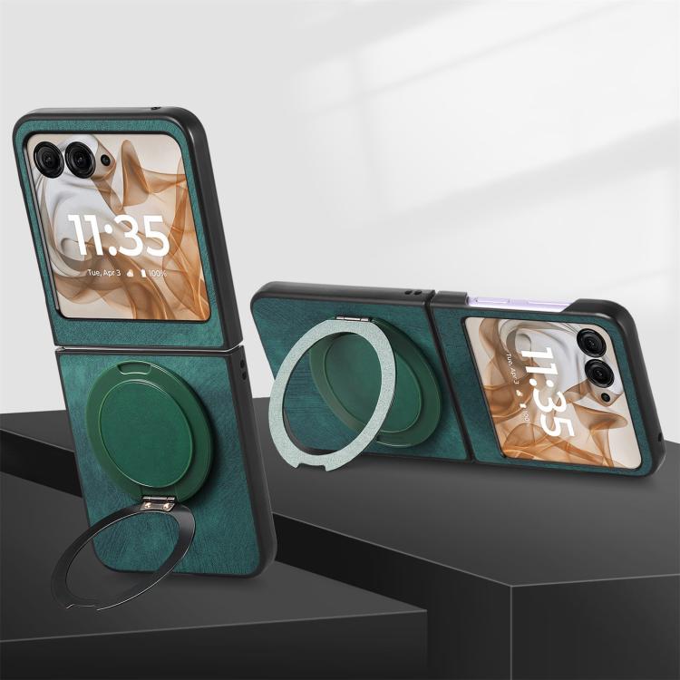 Funda de cuero retro con soporte giratorio para Motorola Moto Razr 60 (verde)