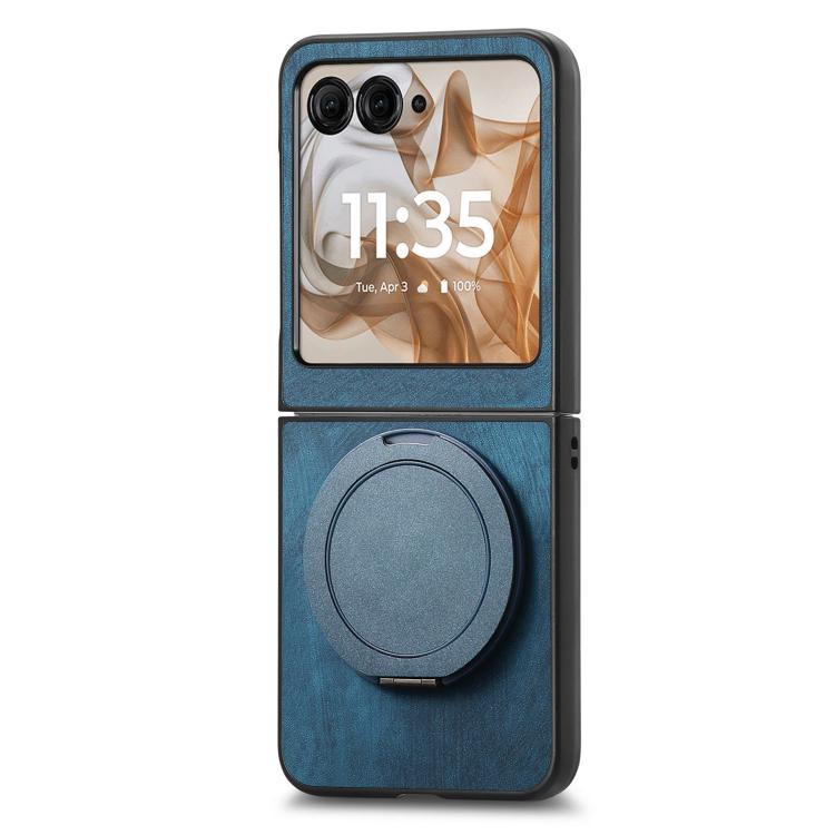 Funda de cuero retro con soporte giratorio redondo para Motorola Moto Razr 50 (azul)