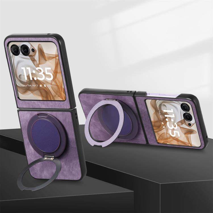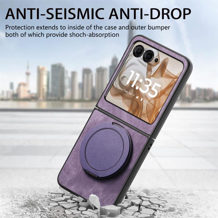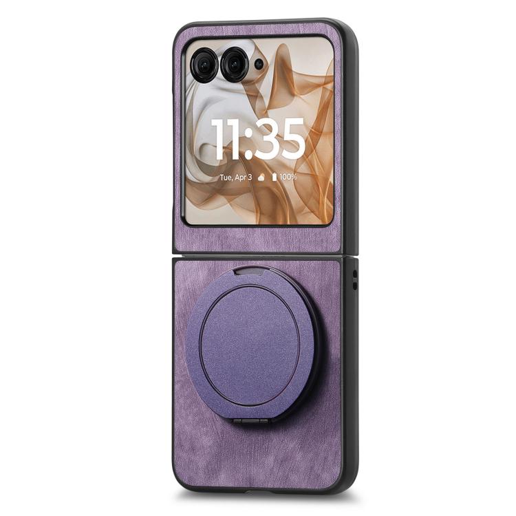 Funda de cuero retro con soporte giratorio redondo para Motorola Moto Razr 60 (morado)